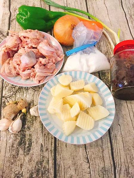 根莖類蔬菜,加上雞肉,炒的有點辣辣的,底下還會放些手工麵條,麵條吸飽醬汁,